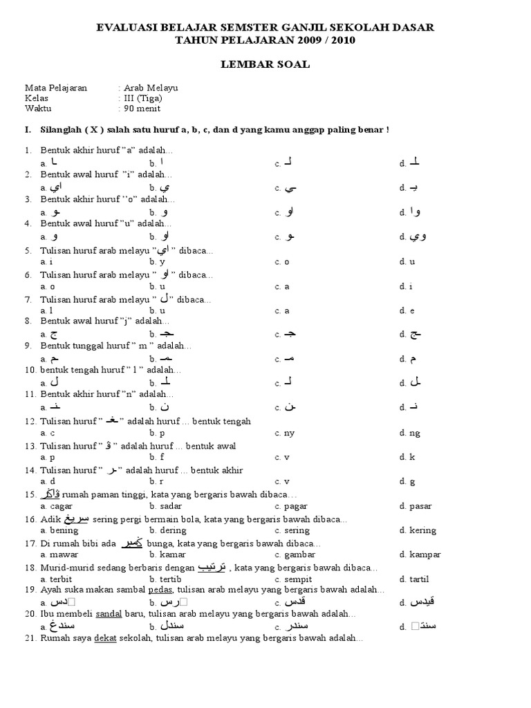 Soal Tulisan Arab Melayu Bantuin Donk Brainly Co Id from id-static.z-dn.net Soal arab melayu kelas 2 semester 2. Maybe you would like to learn more about one of these? Check spelling or type a new query. We did not find results for: